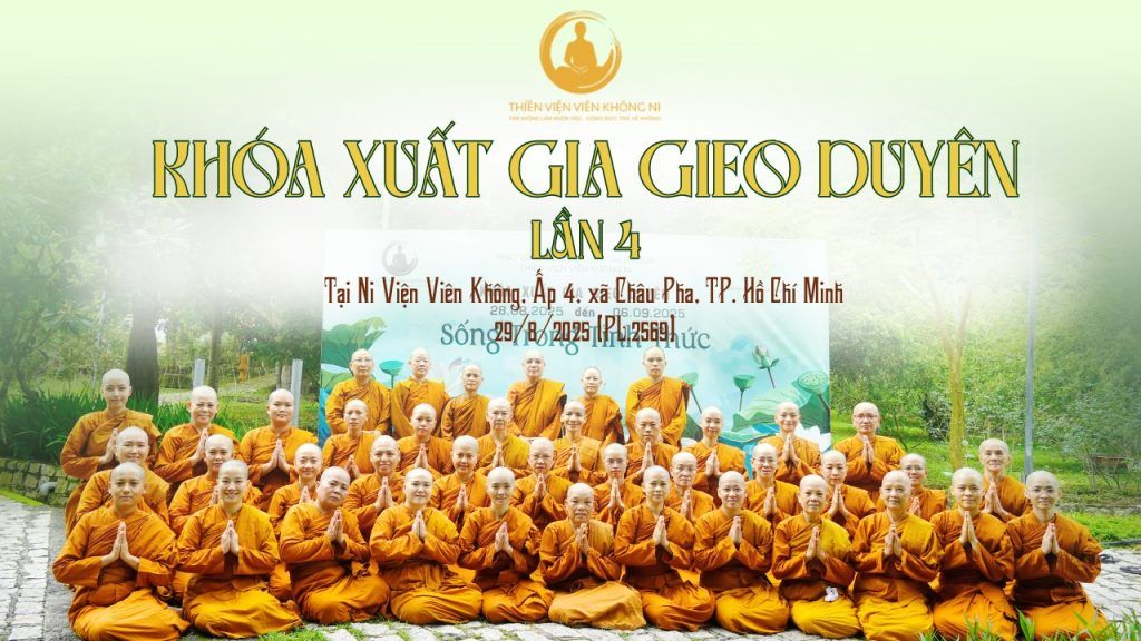 Từ ngày 28/8 đến 6/9/2025 Ni Viện Viên Không đã thành công tổ chức Khóa Tu Xuất Gia Gieo Duyên lần thứ 4, tạo điều kiện cho các nữ Phật tử tại gia có tâm nguyện xuất gia nhưng chưa đủ duyên để dấn thân trọn đời, được trải nghiệm đời sống tu sĩ trong thời gian ngắn. Khóa tu là cơ hội quý báu để các Phật tử gieo duyên lành với Tam Bảo, tìm hiểu sâu hơn về nếp sống thanh tịnh và công phu tu tập của người xuất gia.
