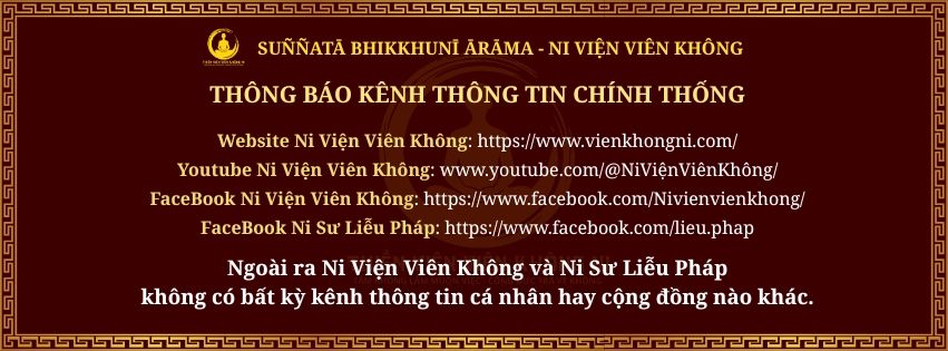 Vì vậy, để thuận tiện cho quý đạo hữu có kênh thông tin chính thức để tu học, không bị tiếp cận với các kênh thông tin sai sự thật. Ban Truyền thông của chùa xin thông báo những tài khoản sau thuộc quyền sở hữu của Ni Viện Viên Không và Ni Sư Liễu Pháp. Ngoài các kênh thông tin này ra chúng tôi không chịu trách nhiệm về nội dung cũng như đóng góp, thắc mắc của quý vị đối với các kênh thông tin không thuộc quyền sở hữu của chùa.
